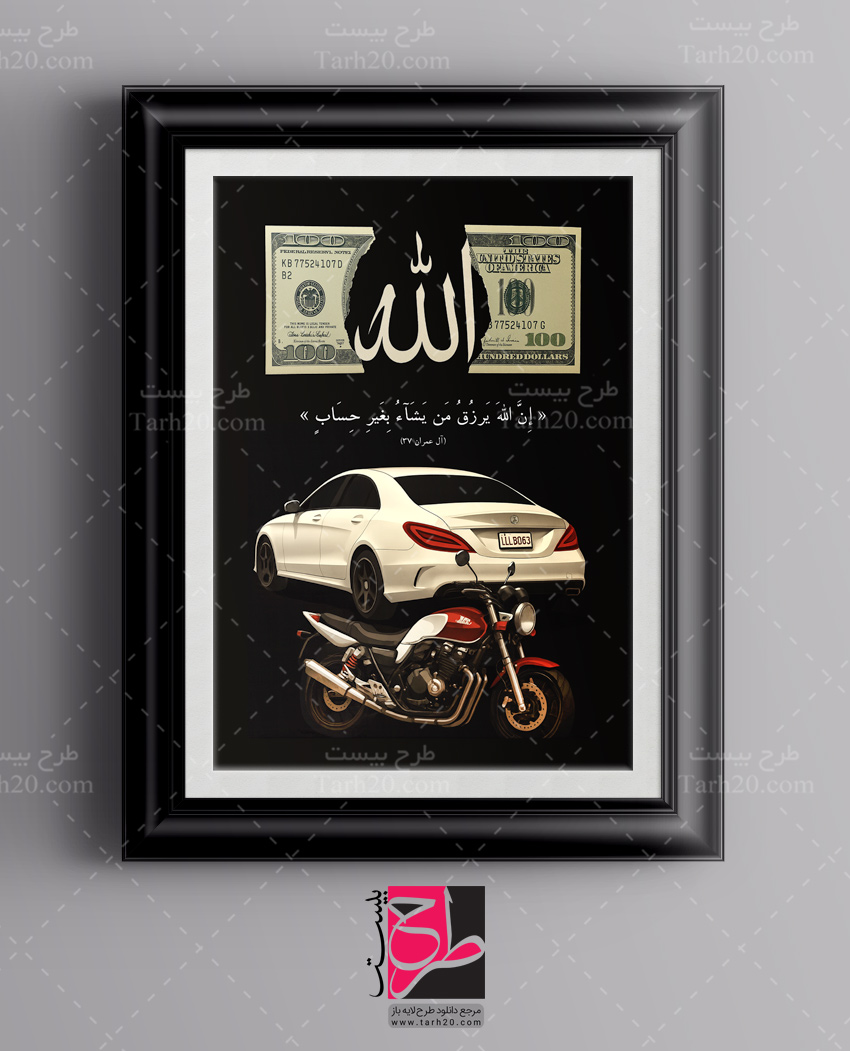 فون عکس , فون عکس دلار ،طرح لایه باز فون عکاسی، تابلو دلار رزق و روزی، تابلو ان الله یرزق، تابلو موتور سی بی، تابلو دلار با موتور و بنز