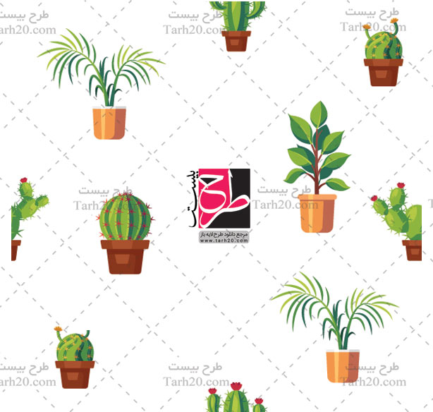 دانلود طرح وکتور پترن گلدان و کاکتوس