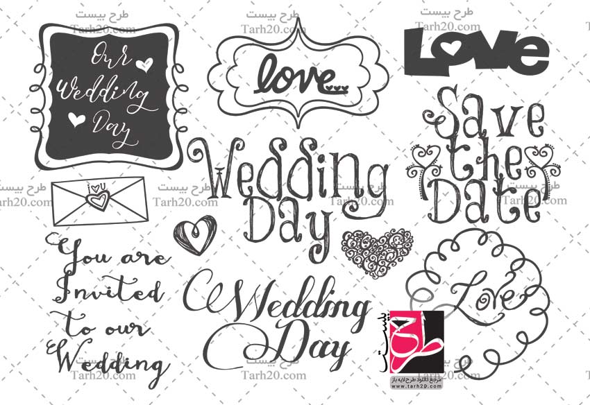 دانلود مجموعه وکتور المان و متن جشن عروسی - طرح 20
