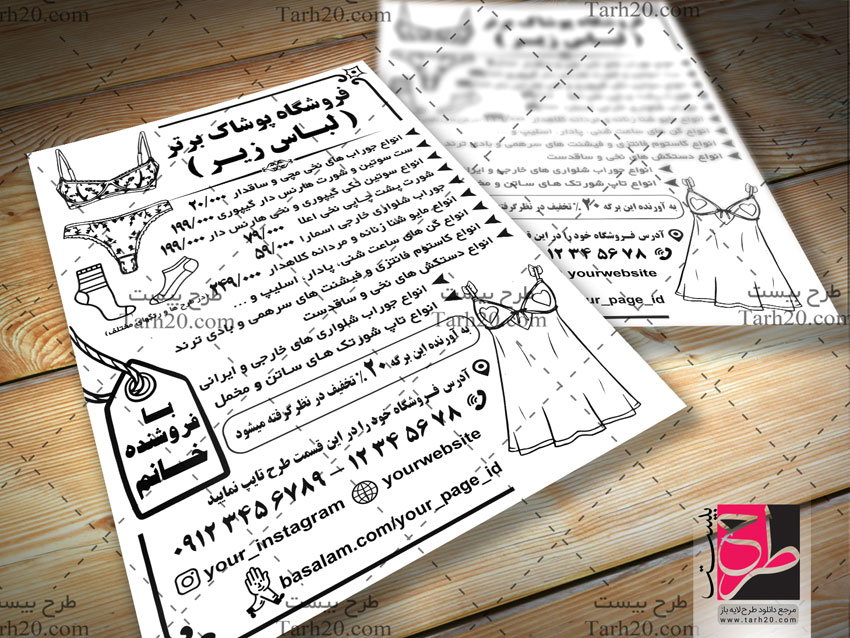 این طرح تراکت ریسو لباس زیر آماده سفارش چاپ می باشد.