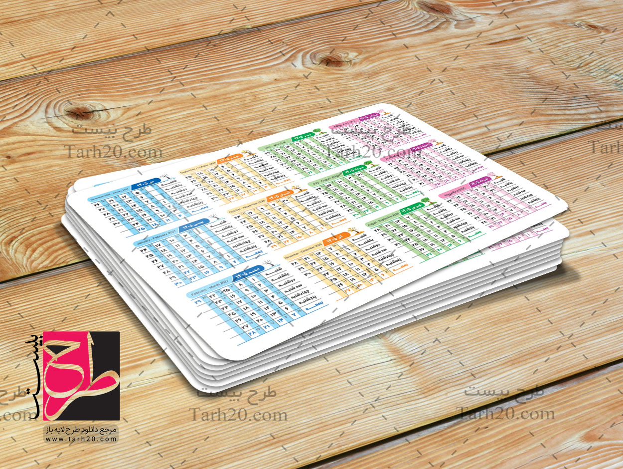 قابل چاپ به روش افست برای موضوعات : تقویم دیواری، کارت ویزیت تقویم، پشت کارت ویزیت تقویم، سالنامه 1405، تقویم تک برگی، تقویم سال 1405، تقویم سال جدید، تقویم دیواری 1405 می باشد که توسط طراحان سایت طرح ۲۰ ( طرح بیست ) در اندازه 9 در 6 سانتیمتر بشکل تکرو بر اساس روانشناسی رنگ ها طراحی شده است.