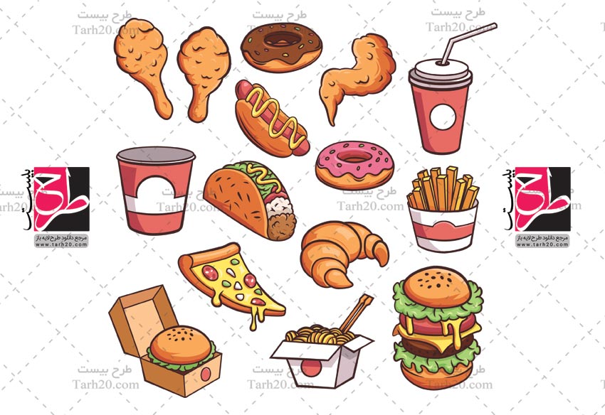 طرح لایه باز مجموعه وکتور رنگی فست فود - طرح 20