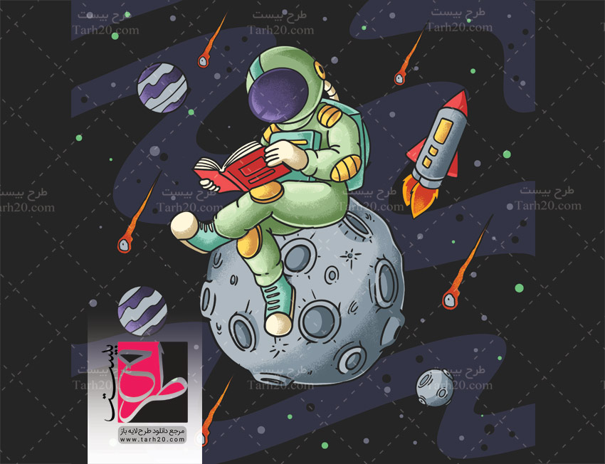 این طرح لایه باز وکتور، فضانورد در حال مطالعه