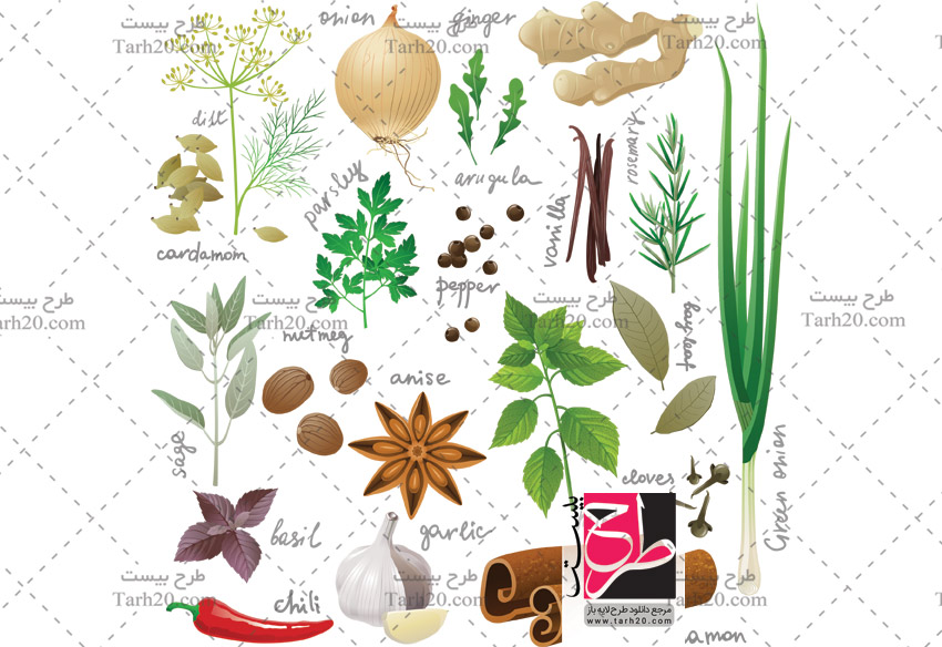 این طرح لایه باز وکتور، ادویه ها و گیاهان دارویی